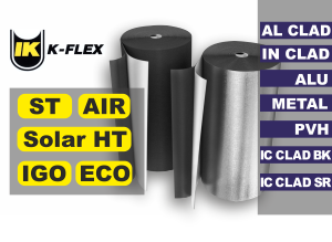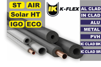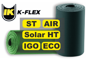 Марка K flex - ST, Solar HT, ECO, AIR, IGO.Толщина 6мм, 10мм, 13мм, 16мм, 19мм, 25мм, 32мм, 40мм+ аксессуары.